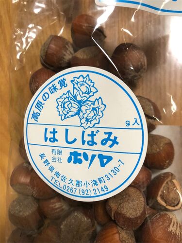 ◯ 先日、長野に帰省した際に「はしばみ」の実なるものを買いました。 ◯ ものすごく広義で言うと、これも「どんぐり」でしょうか。 ◯ 長野県南佐久郡小海町の商店名ですが、裏を見ると、原材料名には「ヘーゼルナッツ(アメリカ)」とあり、「へー、アメリカ…