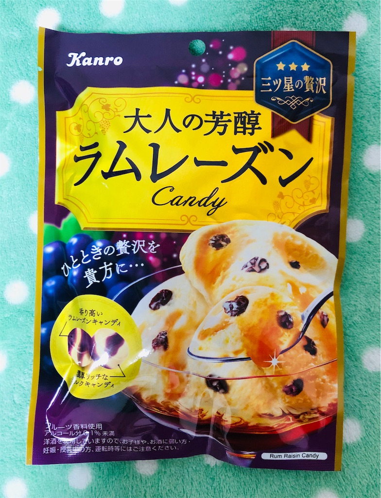 2019-11-06 ラムレーズンキャンディ!! △ 数日前から喉が少し痛い感じです。 ◯ のど飴を探していると、こんなキャンディを見つけました。 大人の芳潤ラムレーズンCandy ◯ 発酵バターに加え、ラム酒も少々入っています。 ◯ これは、オススメできます。 ♪